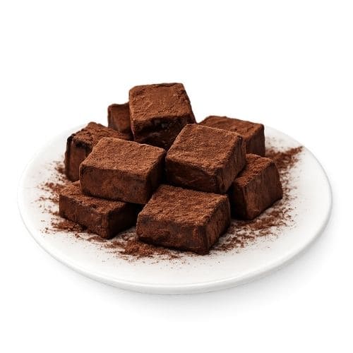 ①チョコレートを細かく刻み、ボウルに入れます。 ②小鍋に水あめと生クリームを入れて中火にかけ、周りがふつふつと沸いてくるまで加熱します。 ③温めた②を①に加えて混ぜ、しっかり溶かします。バットなどに流し入れて平らにし、冷蔵庫で冷やし固めます。 ④冷やし固めたものを正方形にカットし、夢トッピング「チョコ」をまぶして完成です。