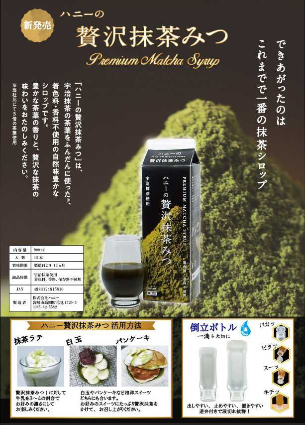 さて、この度新商品の「ハニーの贅沢抹茶みつ」が登場しました。
