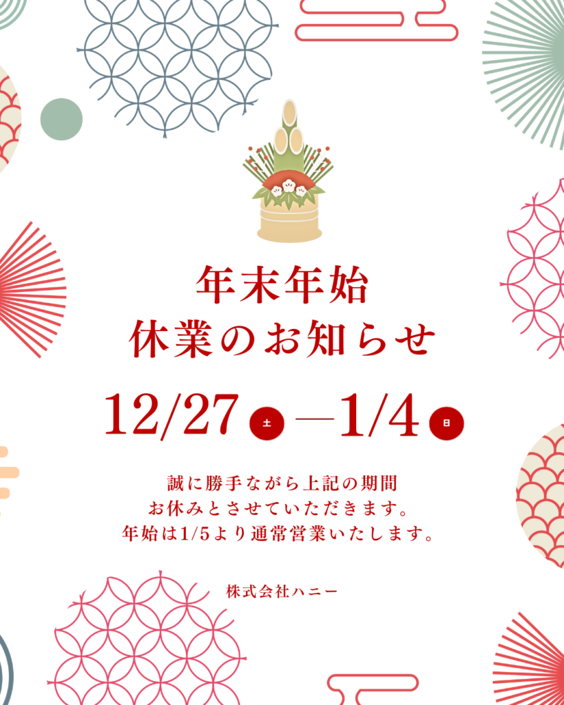 【休業期間】2025年12月27日(土)~2026年1月4日(日)
