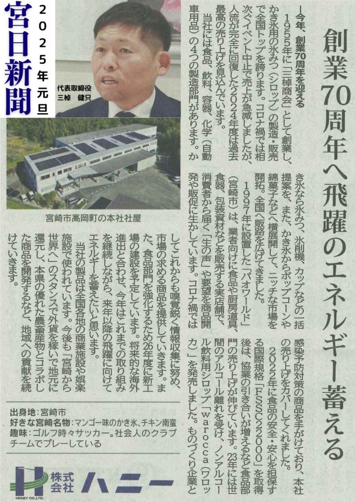 2025年1月1日の宮崎日日新聞「新春トップメッセージ2025」にて、当社社長の挨拶が掲載されました。